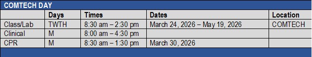 All students will be required to complete a drug screen\ official background check. The performance of the drug screen\criminal background check is currently a requirement of the clinical sites with whom the College has contracted to provide clinical training and experience to the College’s Health Sciences students. It will be your responsibility to pay for the drug screen / criminal background check. Additional information regarding the ONLINE company you will complete this through will be provided upon registration. This must be completed no later than the first week of class.