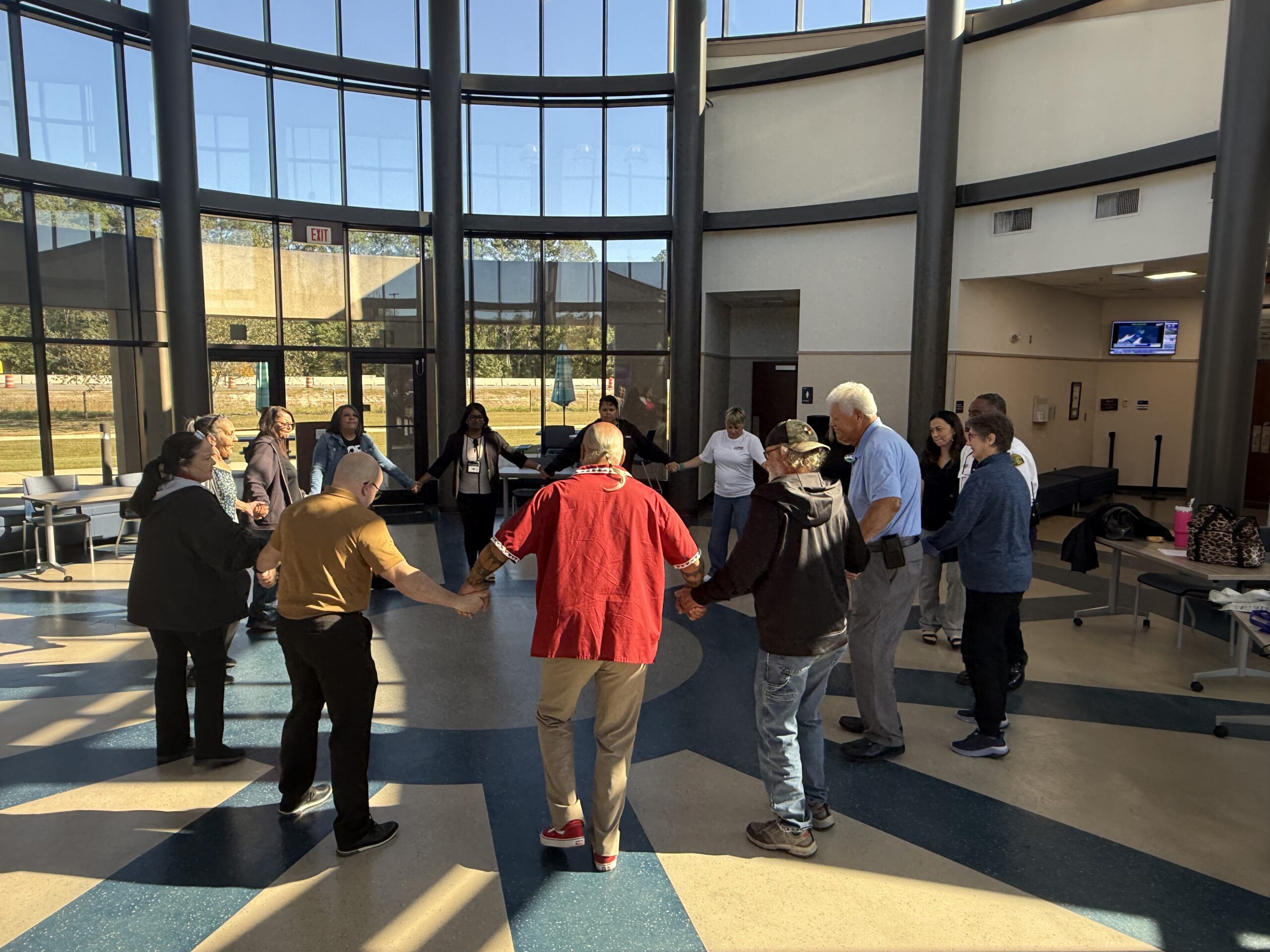 The event concluded with a Friendship Dance led by Mr. Reggie Brewer, Culture Coordinator for the Lumbee Tribe of North Carolina. Attendees joined hands in a circle to symbolize unity, healing, and shared purpose in addressing the county’s most pressing challenges.